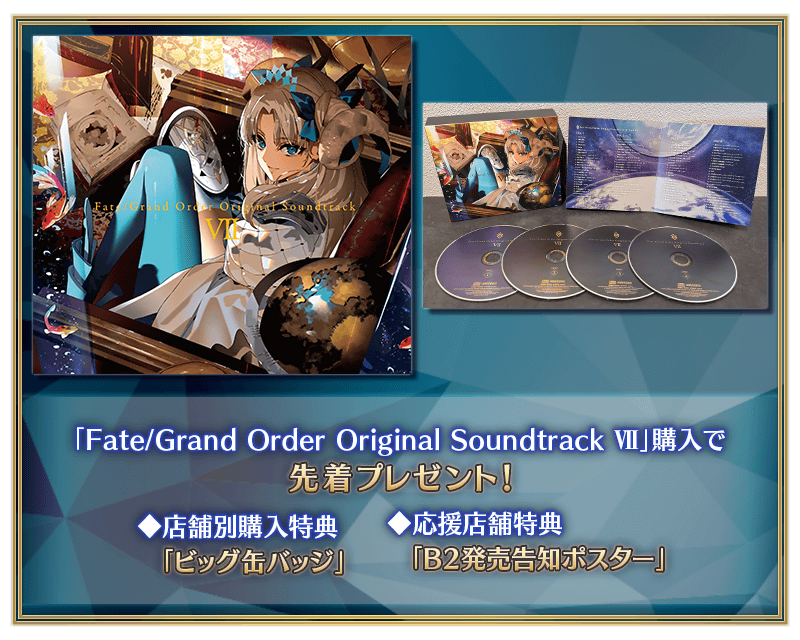 包含上述介紹的追加到「音樂鑑賞」的89曲,全4張組的原聲帶第七彈「Fate/Grand Order Original Soundtrack Ⅶ」在2025年7月30日(三)發售!