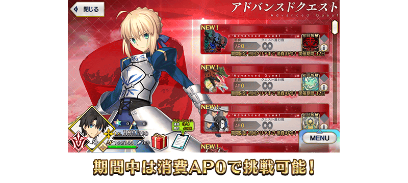 ※以期間限定出現的「蒐集種火」及「修練場」會繼承「關卡情報」到平常每天輪流出現的「蒐集種火」及「修練場」的關卡。 ※在其他宣傳活動實施同様措施的情況,消耗AP減輕的效果不會重疊。