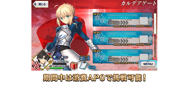 【期間限定】通過「奏章Ⅳ」後,「監獄塔內復仇鬼的哭泣」「All The States’Men!」&「體驗關卡」「概念禮裝獲得關卡」「魔術禮裝獲得關卡」等特殊關卡的消耗AP0!