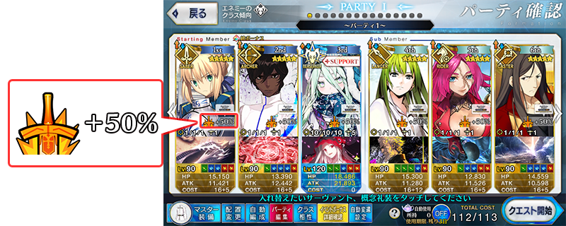 第1部~奏章Ⅳ為止的主線關卡中,在戰鬥開始時我方從者全員的NP增加50%!