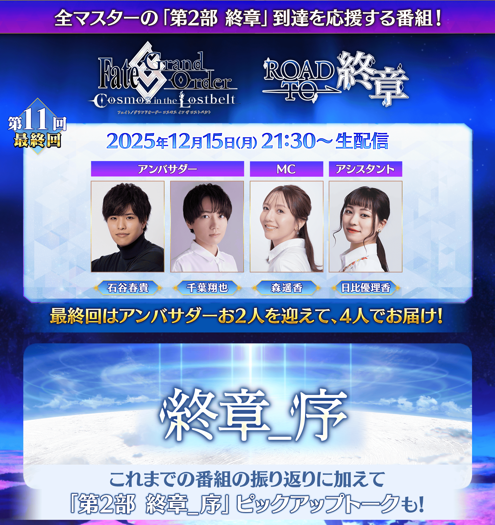 別錯過談話節目「Road to 終章」第11回從12月15日(一) 20:30的播送!
