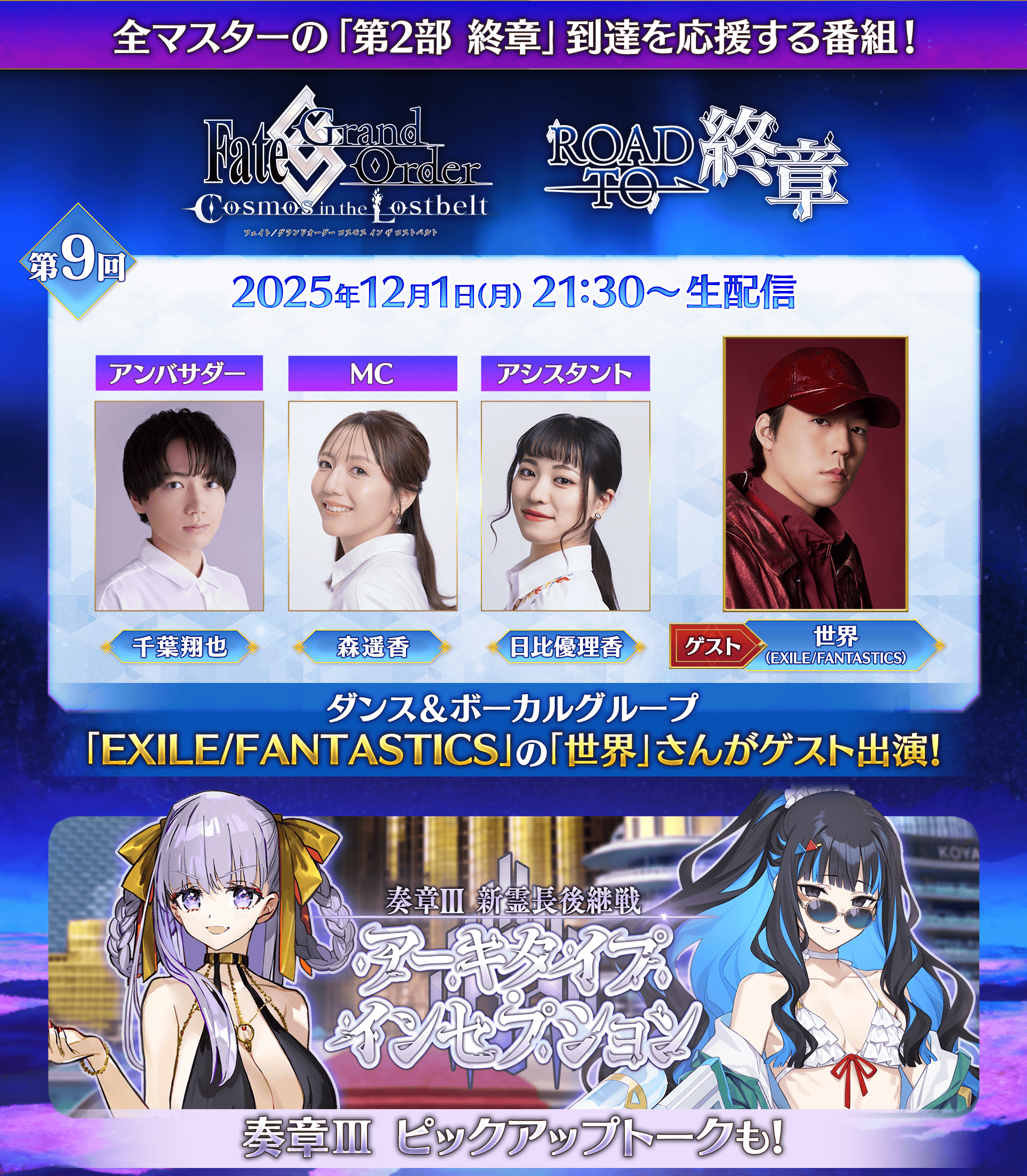 其他還有,『Fate/Grand Order「Road to 終章」第9次播送記念 BB杜拜Pick Up召喚』等的情報公開中!