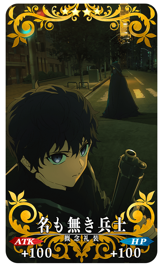 在下述的期間中登入的話,贈送『TV動畫「Fate/strange Fake」放送記念宣傳活動』限定概念禮裝「★4(SR)名も無き兵士」1張!