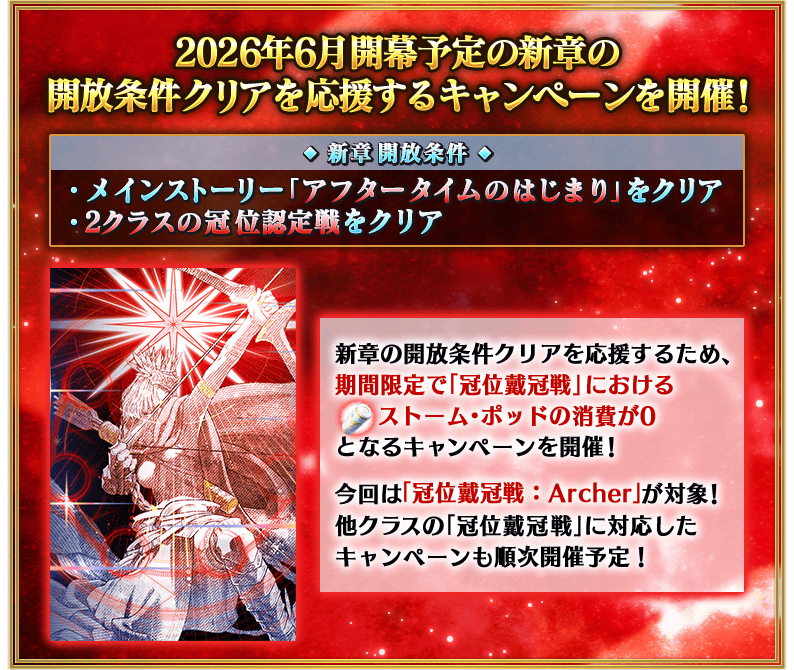 限定 『新章開放條件通過聲援「冠位戴冠戰:Archer」Storm Pod消耗0!宣傳活動』開幕記念 登入獎勵舉辦!