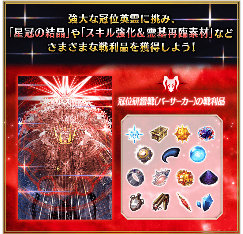 藉此機會強化Berserker職階的冠位從者,試著挑戰成為新章開放條件之一的「冠位認定戰」吧!