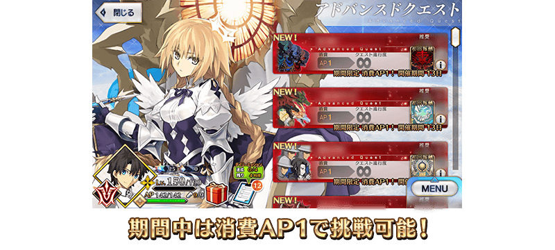 下述的期間中,所有的進階關卡的消耗AP變成1!