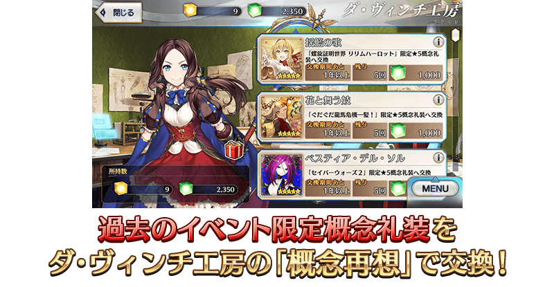 在達・文西工房的「概念再想」,永久追加6種過去的期間限定活動中登場的活動限定概念禮裝!