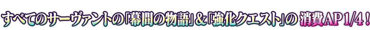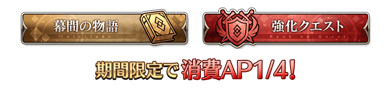 下述的期間中,所有的從者的「幕間物語」與「強化關卡」的消耗AP變成1/4!