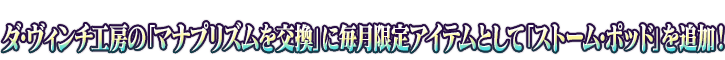 【永久】在達・文西工房的「魔力稜鏡交換」追加「Storm Pod」做為每月限定道具!