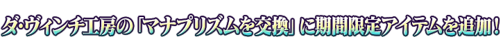 在達・文西工房的「魔力稜鏡交換」以期間限定追加下述的道具。