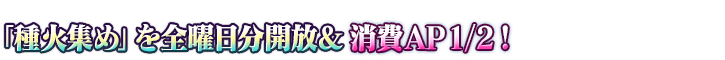【期間限定】「蒐集種火」全種類開放&消耗AP1/2!
