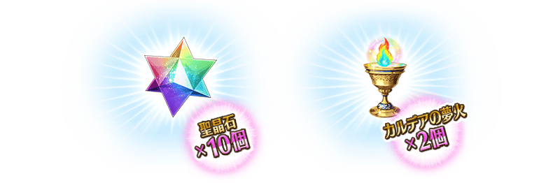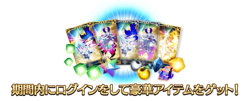 在下述期間中登入10次(1天算1次)的話,贈送稀有稜鏡1個、傳承結晶1個、聖晶石30個(聖晶石召喚最多11次份)等豪華報酬!