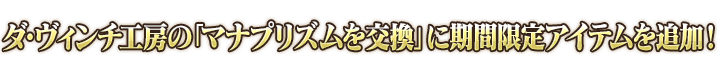 在達・文西工房的「魔力稜鏡交換」以期間限定追加下述的道具。