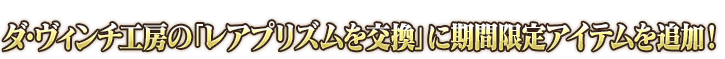 在達・文西工房的「稀有稜鏡交換」以期間限定追加下述的道具。