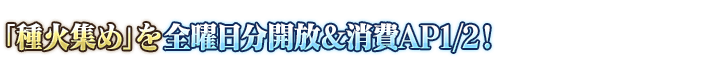 【期間限定】「蒐集種火」全種類開放&消耗AP1/2!
