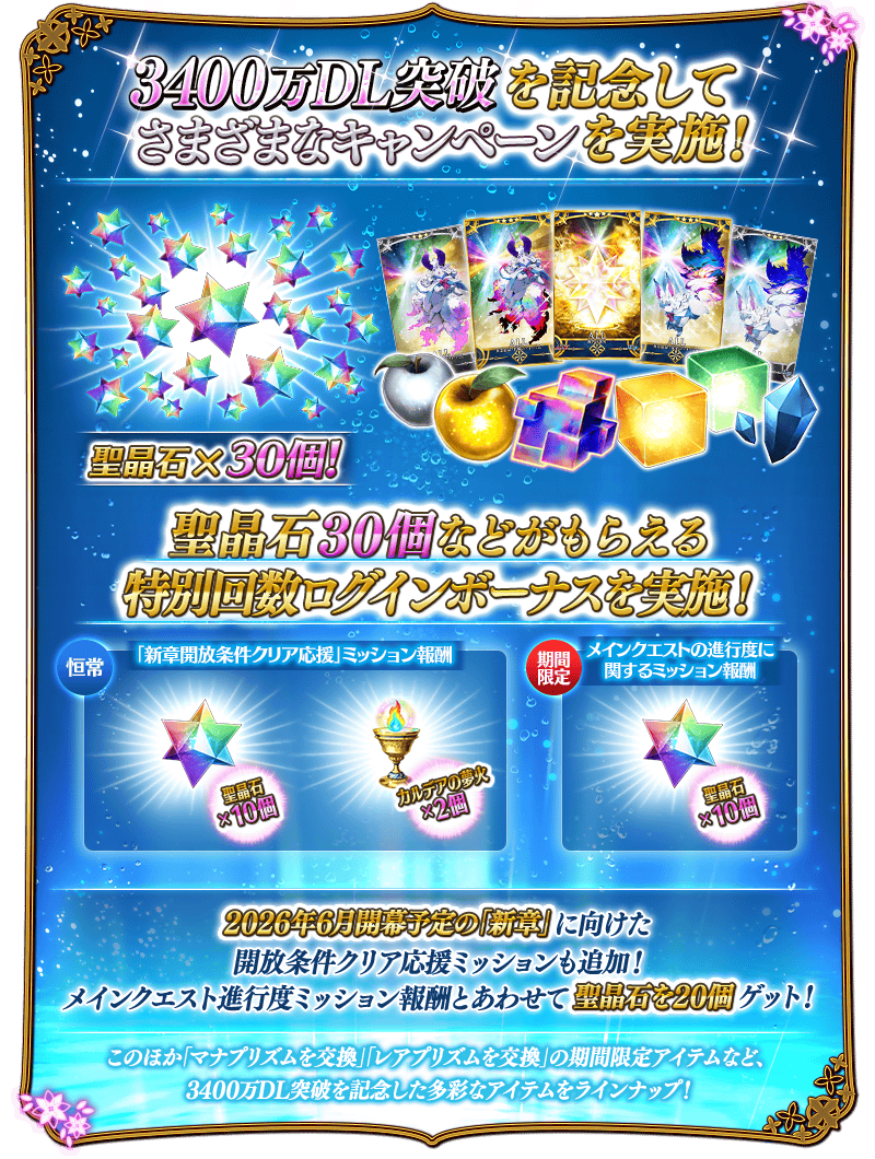【期間限定】3400萬DL突破記念特別次數登入獎勵!