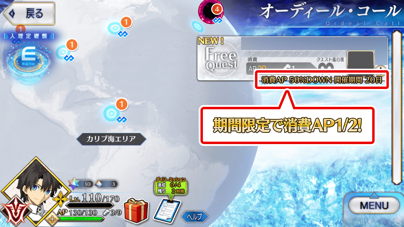 下述的期間中,在白紙化地球上自由關卡的消耗AP變成1/2!