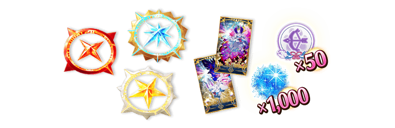 通過任務的話可獲得極星火炬1個、明星火炬1個、新星火炬1個、星光之砂1,000個、英靈結晶・終局之芙芙ALL★5(HP)3張、英靈結晶・原初之芙芙ALL★5(ATK)3張、獸之足跡〔Archer〕50個!
