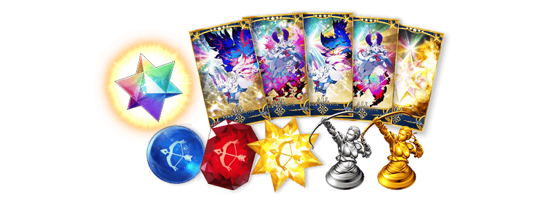 通過任務的話可獲得聖晶石3個、英靈結晶・終局之芙芙ALL★5(HP)1張、英靈結晶・原初之芙芙ALL★5(ATK)1張、英靈結晶・流星之芙芙ALL★4(HP)1張、英靈結晶・日輪之芙芙ALL★4(ATK)1張、睿智的業火ALL★5(SSR)20張、弓階銀像15個、弓階金棋9個、弓之輝石15個、弓之魔石9個、弓之秘石6個!