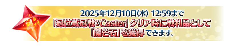 ※「最終物資補給作戰」舉辦到2025年12月10日(三) 11:59,在此之後挑戰「冠位鑽研戰〔Caster〕的情況,無法獲得「魔芒石」。