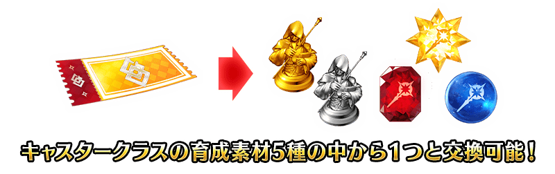 達成各天的所有每日任務的話,可獲得能從Caster職階的培育素材「術階銀像」「術階金棋」「術之輝石」「術之魔石」「術之秘石」的5種之中交換1個的「Caster培育交換券」!