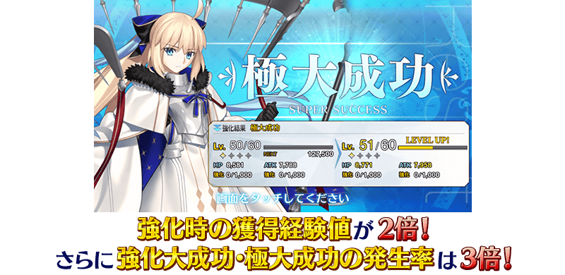並且,大成功(經驗值2倍加成)・極大成功(經驗值3倍加成)的發生率變成3倍!