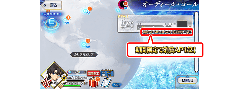 下述的期間中,在白紙化地球上自由關卡的消耗AP變成1/2!