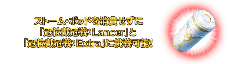 對於尚未強化冠位從者的御主,挑戰「冠位戴冠戰:Lancer」與「冠位戴冠戰:Extra」時的「Storm Pod」的消耗變成0的宣傳活動再舉辦!