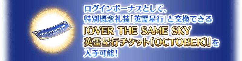 實施可入手能從特別概念禮裝「英霊星行」的「北海道・東北地區」全14種之中交換喜愛1張的「OVER THE SAME SKY 英靈星行券〔OCTOBER〕」登入當作獎勵!