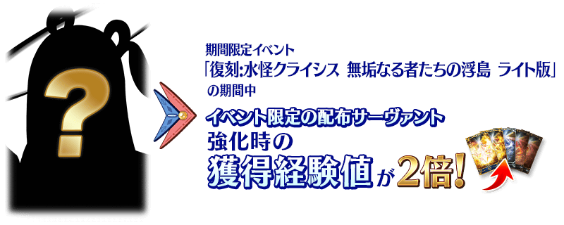 本活動的期間中,強化活動限定的配布從者時的獲得經驗值變成2倍。