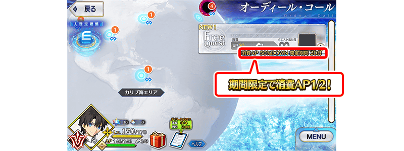 下述的期間中,在白紙化地球上自由關卡的消耗AP變成1/2!