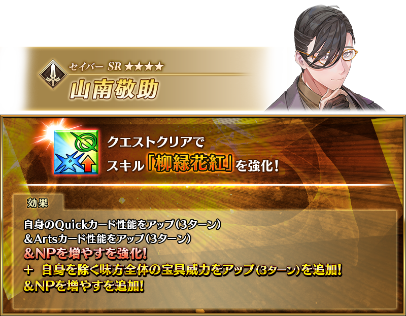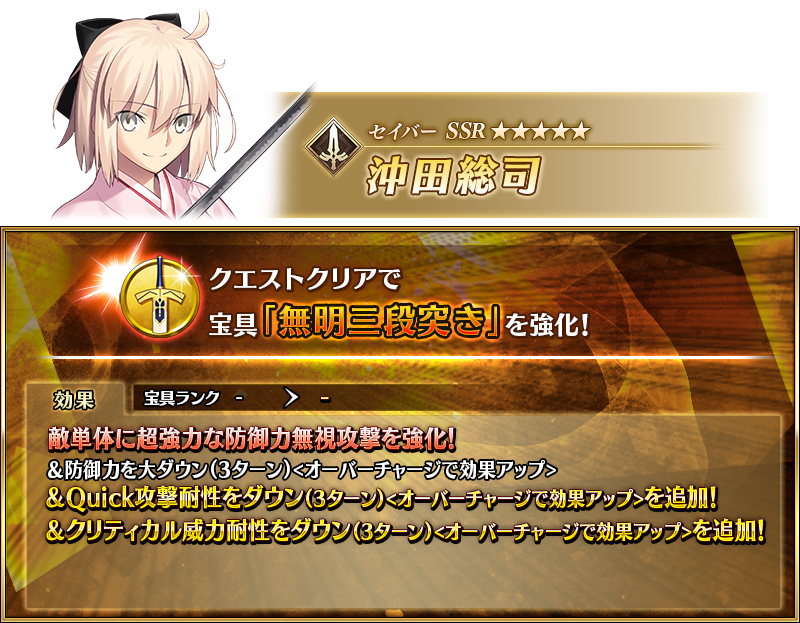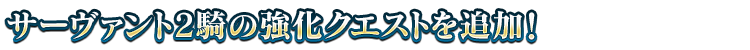 強化「★5(SSR)沖田總司(Saber)」「★4(SR)山南敬助」的特別關卡「從者強化關卡」,在迦勒底之門永久追加。
