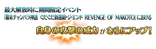 為了記念期間限定活動「幕末交鋒神話 嘮嘮叨叨新選組・THE・END REVENGE OF MAKOTO」的開幕,實施特別次數登入獎勵。