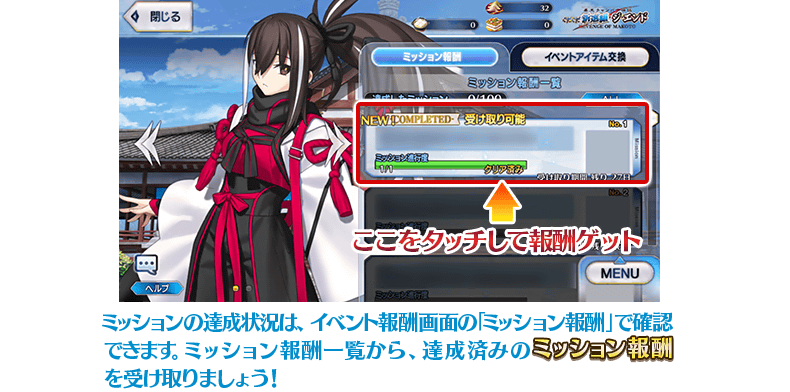 ※上述領取期間內未登入的情況,無法領取贈禮。 ※上述記載在贈送對象的期間內,在管理室(ターミナル)畫面的關卡看板必須要有「CLEAR」的文字顯示。 ※禮物只能領取1次。