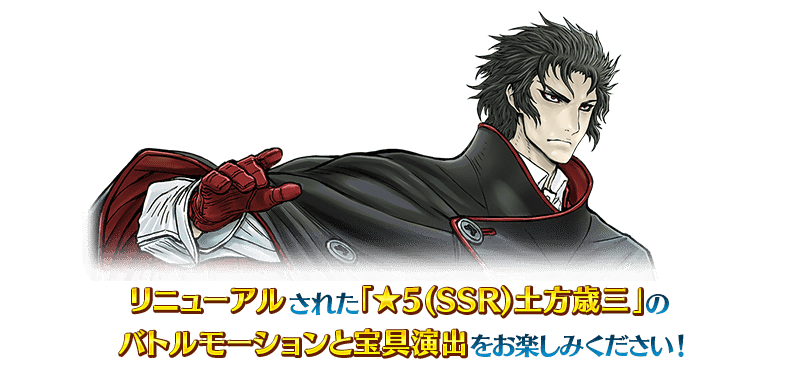 「★5(SSR)土方歲三」的靈衣「淺蔥色羽織袴」的開放權做為期間限定活動「幕末交鋒神話 嘮嘮叨叨新選組・THE・END REVENGE OF MAKOTO」的報酬登場!