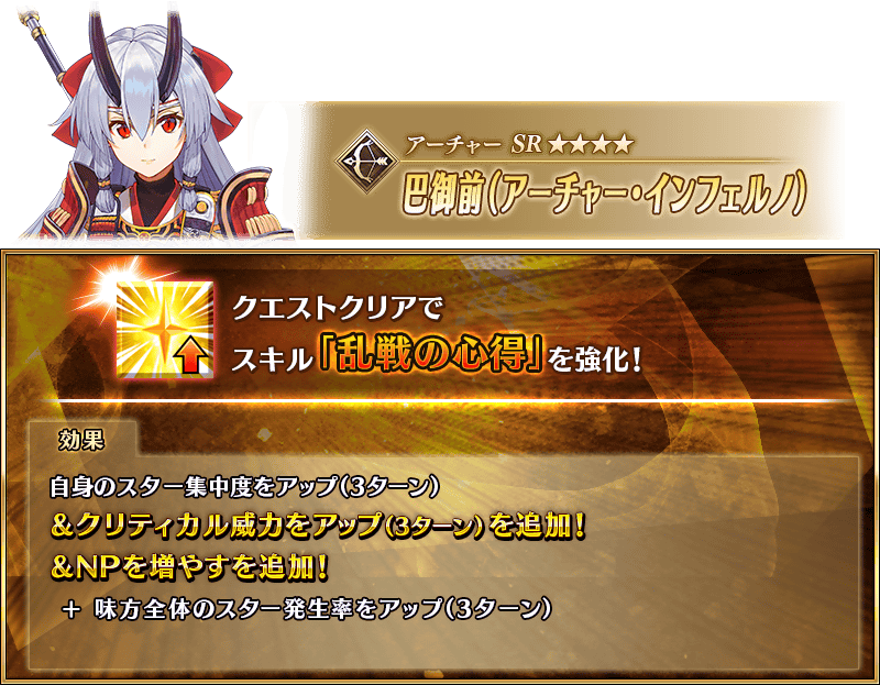 另外,關於「★4(SR)巴御前(Archer)(Archer Inferno)」使其真名判明。
