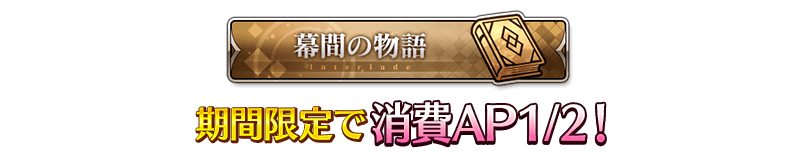 下述的期間中,活動加成從者的「幕間物語」的消耗AP以期間限定變成1/2!(就算在戰鬥中撤退的情況,也會是同様的消耗量)