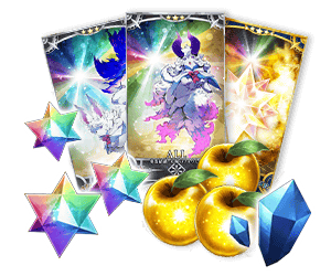 在下述期間中登入10次(1天算1次)的話,贈送最多聖晶石3個、黃金果實4個、200萬QP、睿智的業火ALL★5(SSR)10張、英靈結晶・星之芙芙ALL★3(HP)5張、英靈結晶・太陽之芙芙ALL★3(ATK)5張!