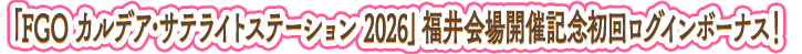下述的期間中,為了記念「FGO 迦勒底衛星站 2026」福井會場舉辦,在初次登入時贈送聖晶石10個!