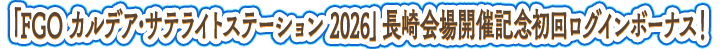 下述的期間中,為了記念「FGO 迦勒底衛星站 2026」長崎會場舉辦,實施「FGO 迦勒底衛星站 2026」長崎會場舉辦前夕登入獎勵!