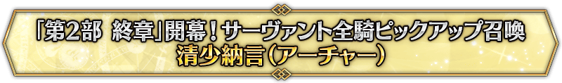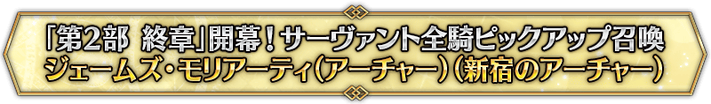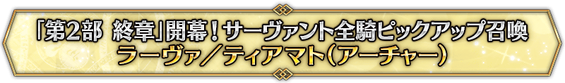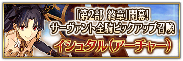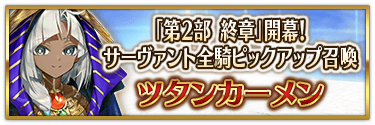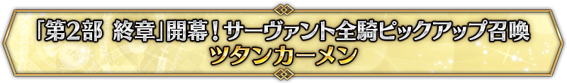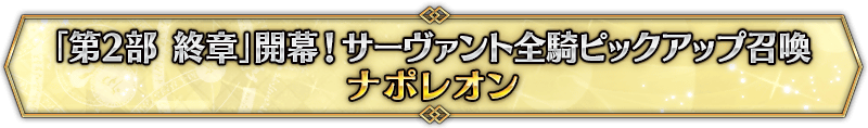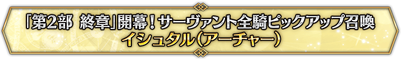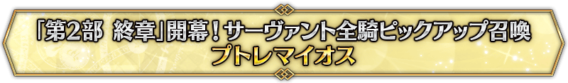 本召喚在『「第2部 終章」開幕! 全從者Pick Up召喚』Pick Up時間表記載的排程會切換召喚內容,在舉辦期間內多次進行的同名Pick Up召喚會繼承而不重置召喚次數。