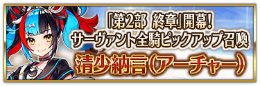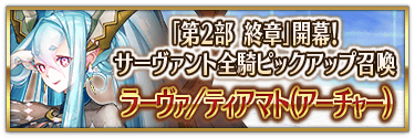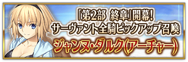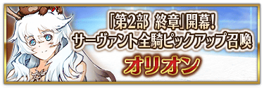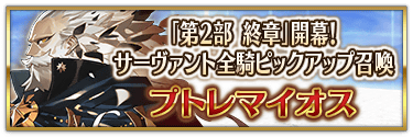 『「第2部 終章」開幕! 全從者Pick Up召喚』中,實施所有職階的從者Pick Up的召喚!