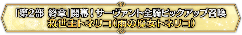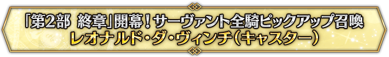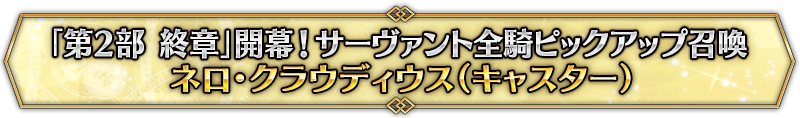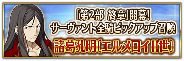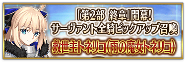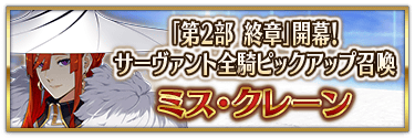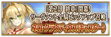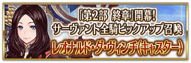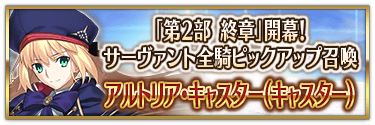 『「第2部 終章」開幕! 全從者Pick Up召喚』中,實施所有職階的從者Pick Up的召喚!