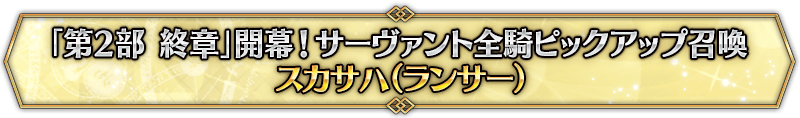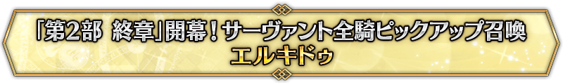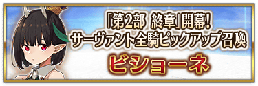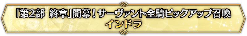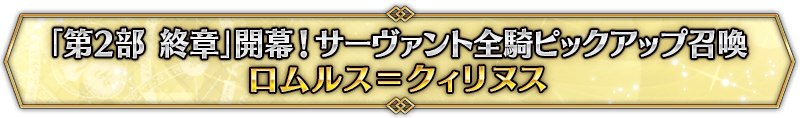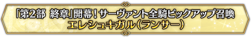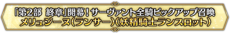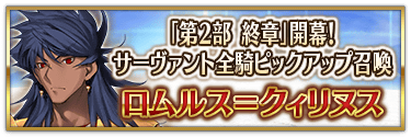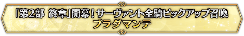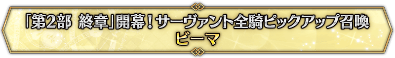 本召喚在『「第2部 終章」開幕! 全從者Pick Up召喚』Pick Up時間表記載的排程會切換召喚內容,在舉辦期間內多次進行的同名Pick Up召喚會繼承而不重置召喚次數。