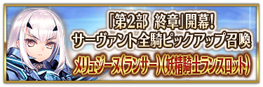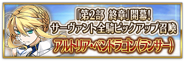 『「第2部 終章」開幕! 全從者Pick Up召喚』中,實施所有職階的從者Pick Up的召喚!