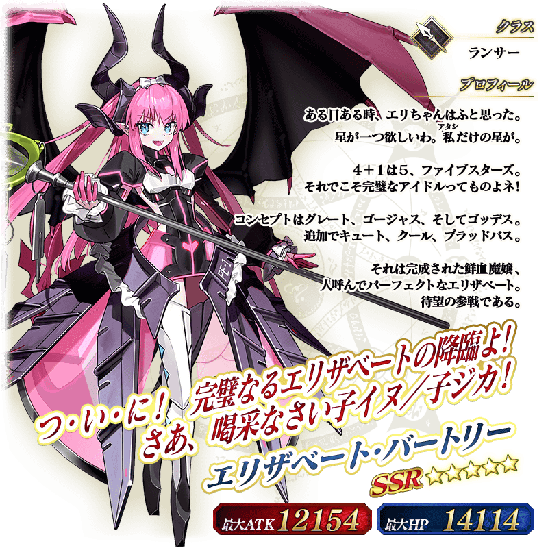 ※上述「★5(SSR)伊莉莎白・巴托里」的立繪為靈基再臨第3階段。