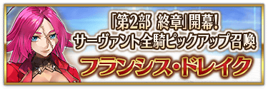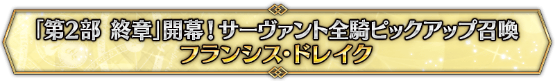 還有,本召喚在『「第2部 終章」開幕! 全從者Pick Up召喚』Pick Up時間表記載的排程會切換召喚內容,在舉辦期間內多次進行的同名Pick Up召喚會繼承而不重置召喚次數。