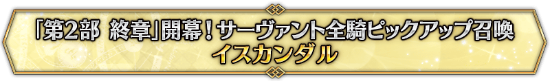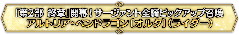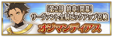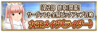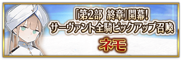 『「第2部 終章」開幕! 全從者Pick Up召喚』中,實施所有職階的從者Pick Up的召喚!