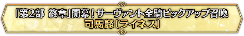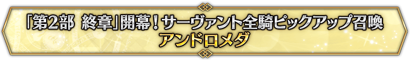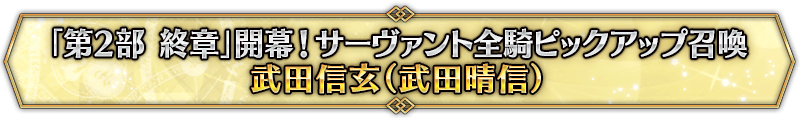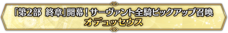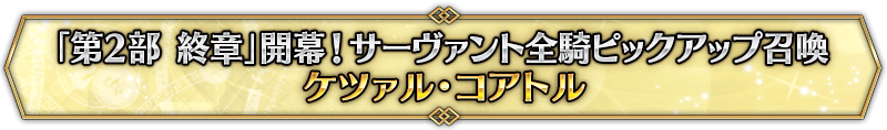 本召喚在『「第2部 終章」開幕! 全從者Pick Up召喚』Pick Up時間表記載的排程會切換召喚內容,在舉辦期間內多次進行的同名Pick Up召喚會繼承而不重置召喚次數。