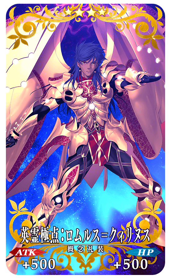 ※上述「★5(SSR)羅慕路斯=奎里努斯」的卡面為靈基再臨第2階段。